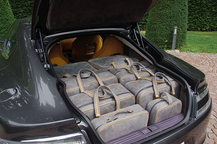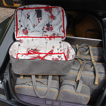 Ook voor heel eigentijdse auto’s leveren wij maatwerk, bijvoorbeeld een luggage-set in dezelfde kleur leer als de bekleding van de autostoelen.